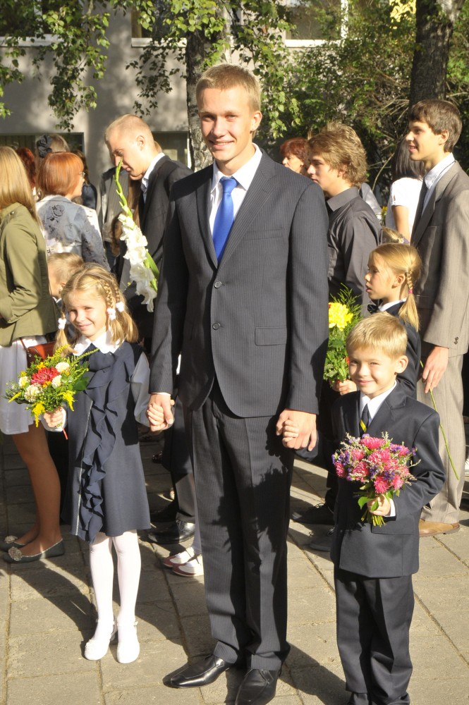 Dažas minūtes pāri deviņiem rītā un krietni pirms svinīgās Zinību dienas iezvanīšanas ar ziedu pušķi rokās Rīgas Centra humanitārajā vidusskolā ieradās Valsts prezidenta dēls Kārlis Zatlers. Nedaudz aprunājies ar skolasbiedriem, puisis smaidīgs devās ārā no skolas telpām uz pagalmu. Paņēmis pie rokas divus pirmklasniekus, Zatlers juniors kārtīgi nostājās pašā rindas galā. No attāluma prezidenta dēlu uzmanīja miesassargs. Svinīgajā ceremonijā puisis uzmanīgi klausījās skolas direktores un viesu uzrunas, bet, atskanot zvanam, kopā ar saviem aizbilstamajiem devās skolā.