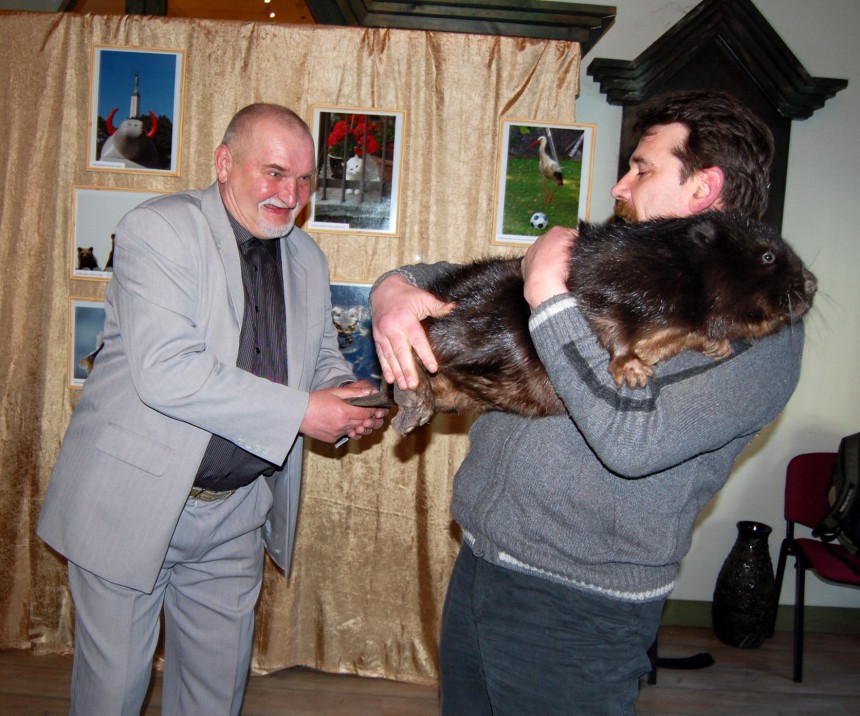 Par pārsteigumu izstādē parūpējās zooloģiskā dārza ilggadējais aizbildnis Ingmārs Līdaka, kurš ieradās kopā ar lūšu dabisko ēdienu – bebru.