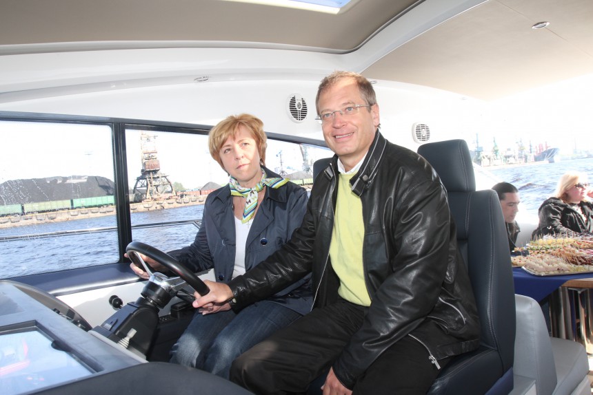 Pie iespaidīgās motorjahtas stūres vienubrīd sēdās arī Rīgas domes priekšsēdētāja vietnieks Andris Ameriks ar SIA «Rīgas ūdens» valdes priekšsēdētāju Dagniju Kalniņu. »VZ« vicemērs gan atklāti atzina, ka patiesībā šāda izmēra peldlīdzekli viņš stūrēt nemaz nedrīkstētu. «Man ir tiesības [vadīt] ūdenstransportlīdzekļus garumā līdz 12 metriem – gan ūdensmotociklus, gan kuterus. Profesionāļu tiesības ir līdz 24 metriem – tās agrāk Latvijā nevarēja pat nokārtot, to varēja izdarīt tikai Igaunijā, Tallinā, kur nācās beigt mēnesi ilgus apmācības kursus. No šī gada to var izdarīt arī Latvijā,» klāstīja Ameriks. «Taču vispār man ir tiesības – esmu arī braucis pie [ūdenstransporta] stūres.» Pirms pāris gadiem vicemēram gadījies amizants notikums. «Kad braucu ar motorlaivu no Daugavas uz Baltezeru, kā iebraucu Ķīšezerā, mani uzreiz apturēja municipālā policija. Man par šo centību bija liels prieks, es vēl viņus paslavēju – vo, malači! Parādīju tiesības, viss bija kārtībā.»