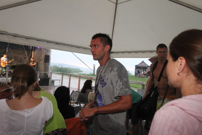 Bērziņa alkoholisko kokteiļu daudzums pie bāra neizsīka un tika papildināts ar rezervēm – viena glāze nomainīja otru. Tā kā basketbolisti jau bija salijuši nākot, arī spēcīgais lietus vairs nebija šķērslis atraktīvām darbībām zem klajas debess. Draudzene no Bērziņa neatkāpās ne soli un piedalījās pašu organizētā jautrībā.