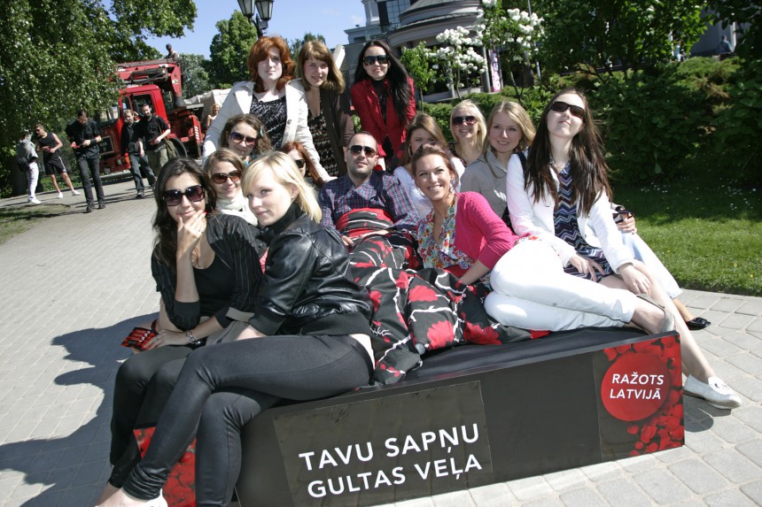 Aizvadītajā piektdienā daudzus nejaušus garāmgājējus pārsteidza skats, kas pavērās pie Latvijas Nacionālās operas, – milzīga gulta, kurā, tērpies pidžamā, laiski gulšņāja par pašmāju princi nodēvētais deju skolotājs Valdis Škutāns. Kopā ar puisi »VZ« izdevās lielajā gultā saskaitīt trīspadmit meitenes vienlaikus!
