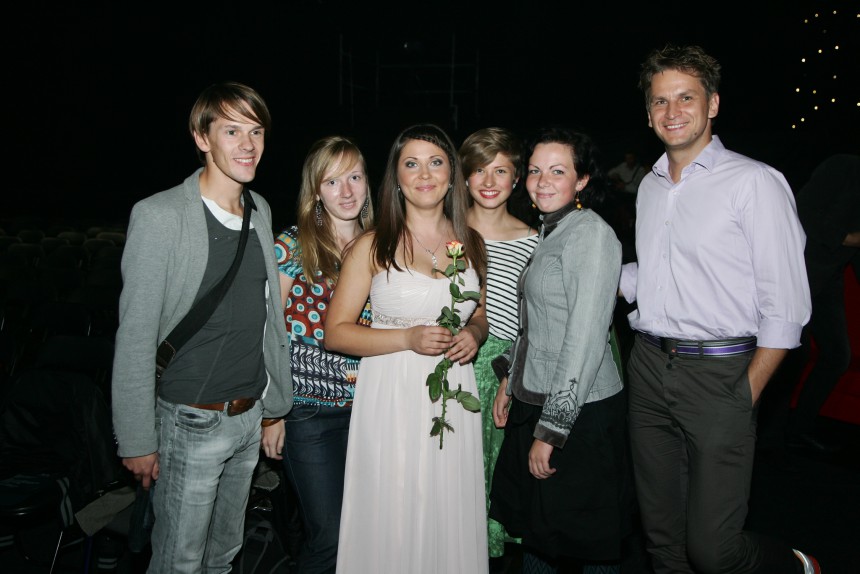 Grupas «Musiqq» vokālists, šova dalībnieks Emīls Balceris gan kavējās saviesīgās sarunās ar «zelta dziesmas» fona vokālistēm, gan metās dejās.