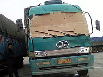 Vadītājs esot iekļuvis avārijā, kuras rezultātā kravas automašīna palikusi bez priekšējā stikla. Tā vietā, lai salabotu automašīnu, vadītājs nolēma stikla vietā ielikt kartonu un turpināja ceļu, vēsta „Ananova”.