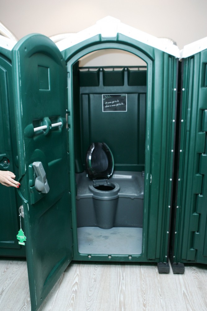 Ieraugot, ka aiz baltajiem zīda aizskariem paslēpušās labierīcības liek dabiskās vajadzības kārtot tā sauktajās mobilajās tualetēs, «Dolce & Gabbana» un «Versace» zīmolos tērpto dāmu šoks bija neviltots. «Tu neesi piedzēries – šī patiešām ir zaļa plastmasas WC!» vēstīja uzraksts uz abiem dzimumiem vienlīdz pieejamām «Palazzo Italia» labierīcībām.