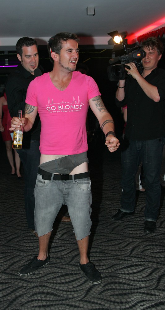 Glītas, spiedzošas blondīnes rozā apģērbā jebkura sirdi spētu padarīt kvēlāku, nemaz nerunājot par itāliešu vīriešiem, kas atzīmē vecpuišu ballīti. Latvijas Blondīņu asociācijas rīkotā festivāla «Go Blonde» noslēguma ballītē klubā «Godvil» viens no karstasinīgajiem itāliešiem nespēja valdīt pār sevi un deju zālē bija redzams ar nolaistām biksēm.