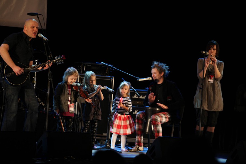 Mazo «dzelzs vilku» rindās īpaši pārliecinoši izskatījās Jura Kaukuļa dēls Marts (6), kurš spēlēja arī vijoli. Rūta (4) centās pūst stabuli, bet Mārča Judža meitiņa Patrīcija (3) cītīgi vilka līdzi meldiņu mikrofonā. Sastāvam palīdzēja arī Kaukuļa sieva Aija.