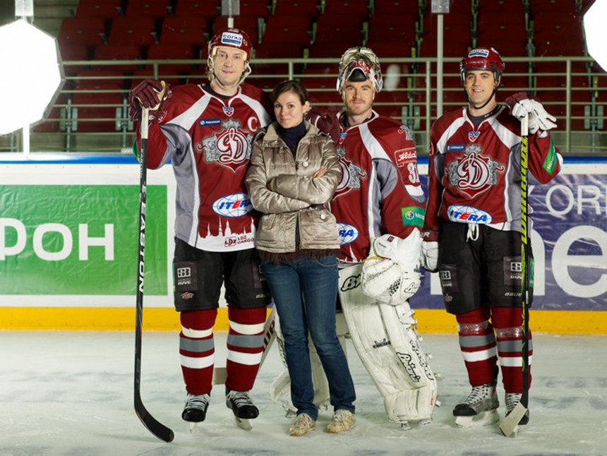 Sociālajā tīklā «facebook.com» fotogrāfa Sergeja Kondrašina sieva Bogdana savā profilā lepojās ar fotogrāfiju, kurā pozējusi kopā ar trim «Dinamo» hokejistiem: komandas kapteini Sandi Ozoliņu, uzbrucēju Marku Hartiganu un vārtsargu Mikaelu Telkvistu. To fotografējis pazīstamais erotiskā kalendāra veidotājs Sergejs Kondrašins, tāpēc daudzi Bogdanas Kondrašinas draugi taujājuši, vai nākamgad Kondrašins visus pārsteigs, kalendārā iekļaujot sportistus? «Nē, pagaidām tādas domas nav. Ar «Dinamo» spēlētājiem Sergejs sadarbojās, veidojot reklāmas foto viņu jaunajam projektam ar «Oriflame,» »VZ« skaidroja Kondrašina. «Šīs sadarbības ietvaros «Oriflame» kļūst par oficiālo valsts vadošā vīriešu hokeja kluba vitamīnu piegādātāju.» Kondrašina neslēpa sajūsmu par mūsu spēlētājiem: «Paskatoties viņu treniņus, es biju sajūsmā par sportistu mērķtiecību un atdevi šai spēlei. Redzot, kā viss notiek dzīvajā uz ledus, sapratu, ko nozīmē dziesmas « не в » (bailīgie nespēlē hokeju – tulk.) teksts.»