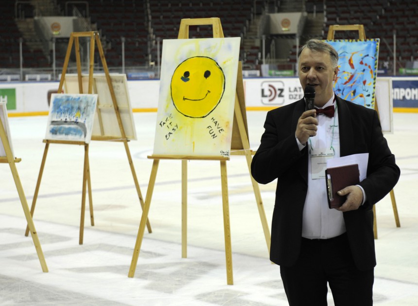 Divas gleznas, kuras ir darinājuši Kanādas hokejisti, nosolīja Kanādas vēstnieks Latvijā Skots Heteringtons, kurš ir liels hokeja fans. Starp citu, vēstnieks visai brīvi spēj kontaktēties latviešu valodā.