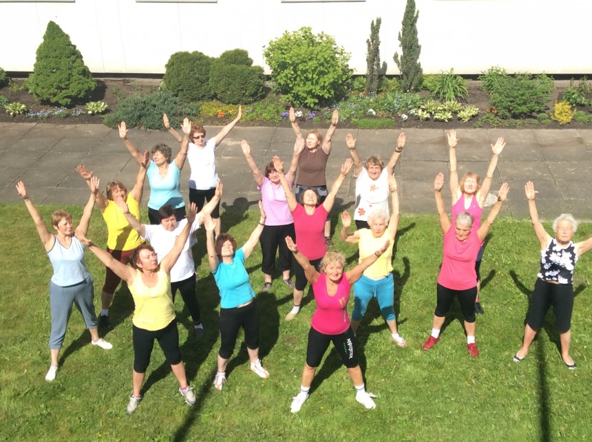 Veltai Putnai būs 80 gadu, un viņa ar aerobiku nodarbojas deviņus gadus. «Ar vingrošanu sāku nodarboties pēc smagas avārijas, kurai sekoja ārstēšanās, rehabilitācija, bet tikai vingrošana man atdeva veselību pilnā nozīmē. Pēc nodarbībām vienmēr jūtos pacilāta,» stāsta Veltas kundze. Jāvingro regulāri un jākustas arī citā laikā, piemēram, lielākā daļa senioru no vingrošanas strādā arī dārzā vai dodas pastaigās. «Mazāk iegriezieties aptiekās, bet vairāk – vingrošanas zālēs,» tāds ir Veltas ieteikums senioriem.