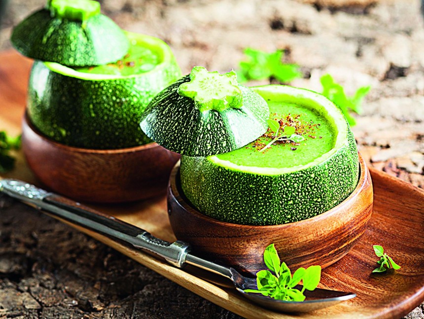 PAGATAVOŠANA:pannā sakarsē eļļu, ieber lokus un sautē 2–3 minūtes. Pievieno cukīni un sautē vēl 5 minūtes. Pieber sāli un piparus. Pielej buljonu un uz vidējas liesmas vāra 10 minūtes, kamēr cukīni ir mīksti. Pievieno olas, pētersīļus, baziliku un strauji samaisa. Pārkaisa sieru. Pasniedz karstu, var papildināt ar grauzdiņiem.
