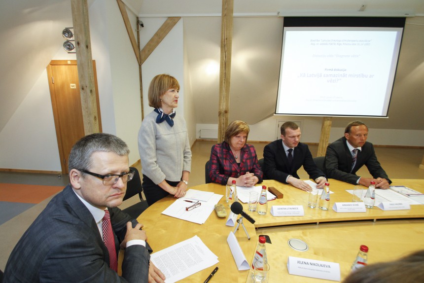 Onkoloģiskās modrības gada ietvaros mediķi pulcējās uz pirmo diskusiju ciklā Diagnoze vēzis. Eiropā 26 procentos gadījumu ļaundabīgs audzējs ir cilvēka nāves iemesls, taču tieši pēdējos 20 gados panākts ievērojams progress audzēju ārstēšanā. Laikā no 2003. līdz 2012. gadam mirstība ar vēzi ik gadu samazinās par vienu procentu. «Atbilde ir šāda: vispirms agrīna diagnostika – jo ātrāk audzēju atklāj, jo veiksmīgāk var ārstēt, un pacients turpina dzīvot,» stāsta G. Purkalne. «Arī Latvijā katru gadu situācija nedaudz uzlabojas un konkrētu vēža formu ārstniecības progress ir vērā ņemams, piemēram, krūts vēža un prostatas vēža ārstniecībā. Tomēr vidējā Latvijas dzīvildze ir 58,3 procenti, tikmēr Eiropā vidējais rādītājs ir 73 procenti. 35 procentos gadījumu vēzis tiek atklāts trešajā un ceturtajā stadijā. Mūs kā onkologus tas ļoti uztrauc.» Otrs iemesls, kāpēc Eiropā samazinās mirstība ar vēzi, ir inovatīvu medikamentu izmantošana un tehnoloģiju pieejamība vēža ārstēšanā. G. Purkalne norādīja, ka inovatīvi medikamenti Latvijā pieejami trīs vēža lokalizācijām – krūts vēzim, galvas–kakla audzējiem, nieru vēzim. Tas diemžēl ierindo Latviju pēdējā vietā Eiropā modernu medikamentu pieejamības ziņā. Vēža diagnoze ir noteikta 74 647 Latvijas iedzīvotājiem, gadā vēzi atklāj gandrīz 12 000 cilvēku, bet nomirst ap 6000 pacientu. G. Purkalne norāda, ka viens no svarīgākajiem uzdevumiem ir kopīgi veidot ilgtermiņa plānu, kurā onkoloģija veselības nozarē ir izvirzīta kā prioritāte ne tikai Onkoloģiskās modrības gada laikā, bet vismaz piecu gadu perspektīvā.