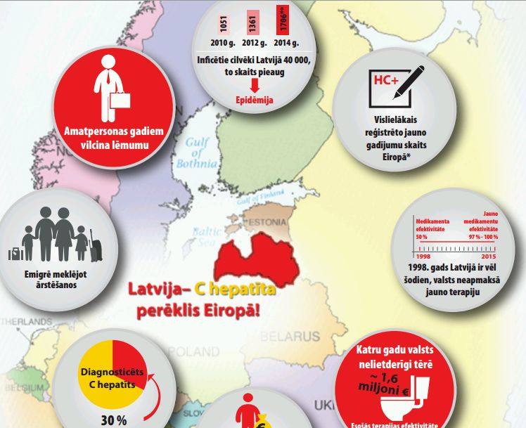 Šodien tiek atzīmēta Pasaules Hepatīta diena, aktualizējot šo infekcijas slimību nopietnību un nepieciešamību pēc atbilstošas ārstēšanas, lai hepatīts nepārvērstos par epidēmiju. Diemžēl Latvijā hepatīta ārstēšanā nekas nav mainījies kopš 1998. gada. Joprojām medikamentu efektivitāte ir tikai 50% un valsts finansē tikai 75% no ārstēšanas izmaksām, kamēr citur Eiropā ārstēšanās ir bez maksas, turklāt Latvijā saslimstība ar hronisku C hepatītu pieaug un šogad to jau ir par 82 gadījumiem vairāk nekā pērn.