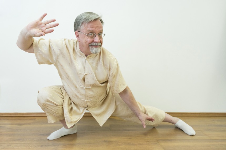 LĪDZSVARAM. «Stāvēšana uz vienas kājas ir brīnišķīgs vingrinājums līdzsvara treniņam,» atzīst ārsts. «Tas stiprina mugurkaulu. Stāvot uz vienas kājas, mazie starpskriemeļu muskulīši trenējas, jo mēs meklējam līdzsvaru. Vecie cilvēki, praktizējot šo pozu, retāk piedzīvo kritienus un mazāk lauž kaulus, kuri osteoporozes dēļ ir trauslāki. Amerikā apdrošināšanas sabiedrības labāk maksā par senioru ciguna vai tai czi cjuaņ treniņiem, lai ziemā, kad ir ledus, viņiem būtu mazāks traumu risks. Ļaudis cienījamos gados nevar izturēt lielu slodzi, tāpēc šie nodarbību veidi ir viņiem piemēroti, turklāt lēnas kustības ir labākas smadzenēm» / Dāvis Ūlands, F64 Photo Agency