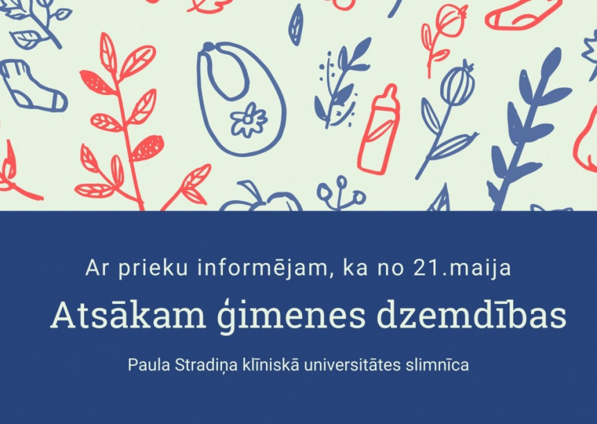 No 21.05.2020 Slimnīcas Dzemdību nodaļā atsākam ģimenes dzemdības, ievērojot piesardzības pasākumus, lai rūpētos par pacientu un darbinieku drošību, liecina informācija slimnīcas mājaslapā.