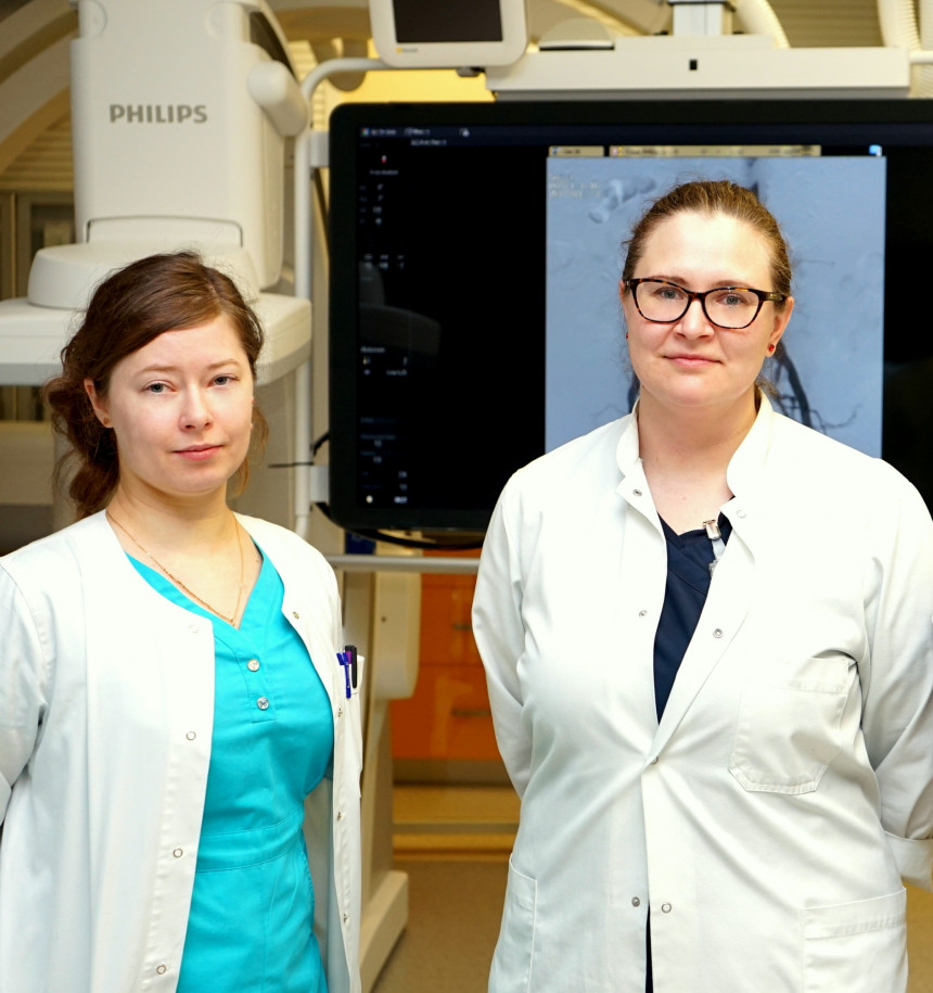 Pirmās operācijas veica invazīvais radiologs Dr. Aina Kratovska un asistēja invazīvā radioloģe Dr. Veronika Zaiceva, kā arī piedalījās radiologa asistenti un medicīnas māsas Aina Niedre, Vera Matute, Jeļena Vasiļevska. Anesteziologi: Dr. Ieva Būce-Šatoba, Dr. Reinis Berezovskis.