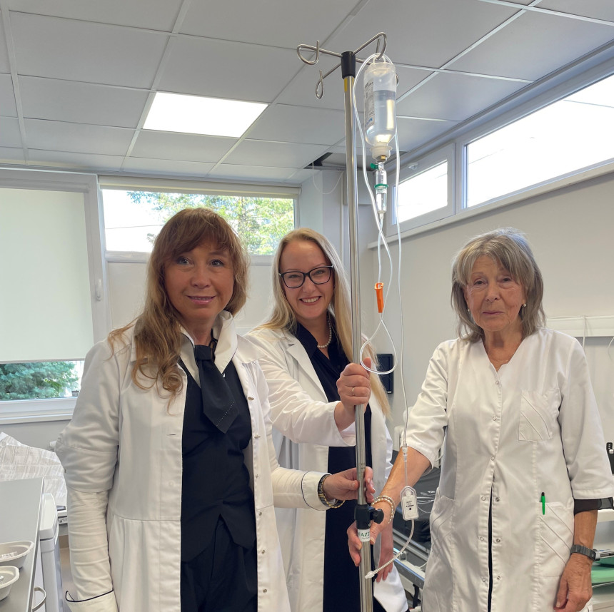 Pirmā zāļu ievades procedūra notika Austrumu slimnīcas Neiroloģijas dienas stacionārā. Zāles pacientei jāievada ik pēc divām nedēļām, pirms tam veicot magnētiskās rezonanses kontroles izmeklējumu un katrreiz pirms zāļu ievades procedūras pārliecinoties par pacientes vispārējo veselības stāvokli. Pacientes ārstēšana ir multidisciplināras komandas darbs.