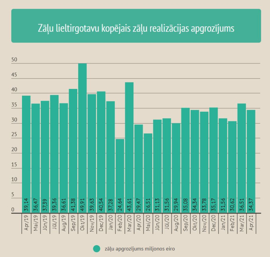 Savukārt salīdzinājumā ar iepriekšējo mēnesi - martu - zāļu realizācijas apmērs samazinājies par 6%.