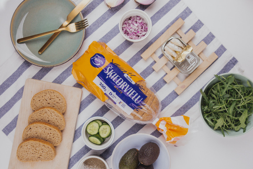 Ņem divus brokastu šķīvjus, uz katra liek pa 2 šķēlēm Fazer Dzīvā Šķiedrvielu maizes. Uz katras uzsmērē avokado, virsū uzber mazliet sīki sasmalcinātu sarkano sīpolu. Uz katras maizes šķēles liek divas sardīnes, pirms tam nogriežot tām astīti un mazliet notecinot eļļu. Virsū liek kārtīgu sauju rukolas un dekorē ar svaiga gurķa šķēli. Ja nepieciešams, pārkaisa mazliet sāli un piparus.